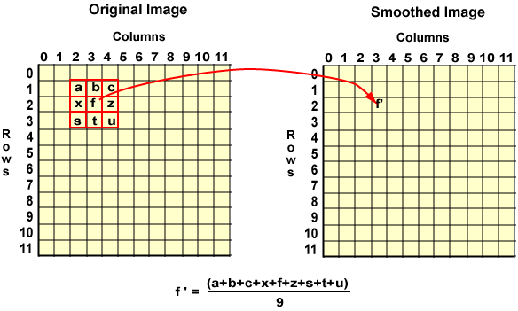 smoothed image is the average of a 3x3 neighborhood centered about the location