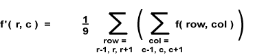 f(r-1, c-1) + f(r-1,c) + f(r-1, c+1) + f(r, c-1) + f(r, c) + f(r, c+1) + f(r+1, c-1) + f(r+1,c) + f(r+1, c+1)You may recognize this as a nested for-loop: