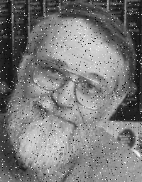 Various neighborhood shapes have various effects on the image. For example, here is the Kernighan image smoothed with a 1 by 7 neighborhood. The image looks as if the camera vertically when the picture was taken.
