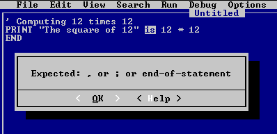 ' Computing 12 times 12 PRINT The square of 12 is, 12*12 END