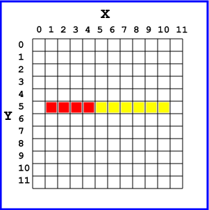 LINE (5, 5) - (10, 5) ' Horizontal yellow line in row 5
