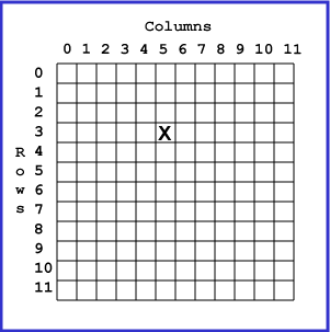 Look at the following piece of graph paper. What is the column and row number of the square with the X?