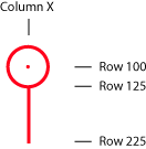 The start of the string: (X, 125) The end of the string: (X, 225)