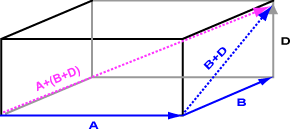 The above diagram shows the result of adding (a + b) + d = c + d. The result is the vector with length and direction the same as the diagonal of the figure.